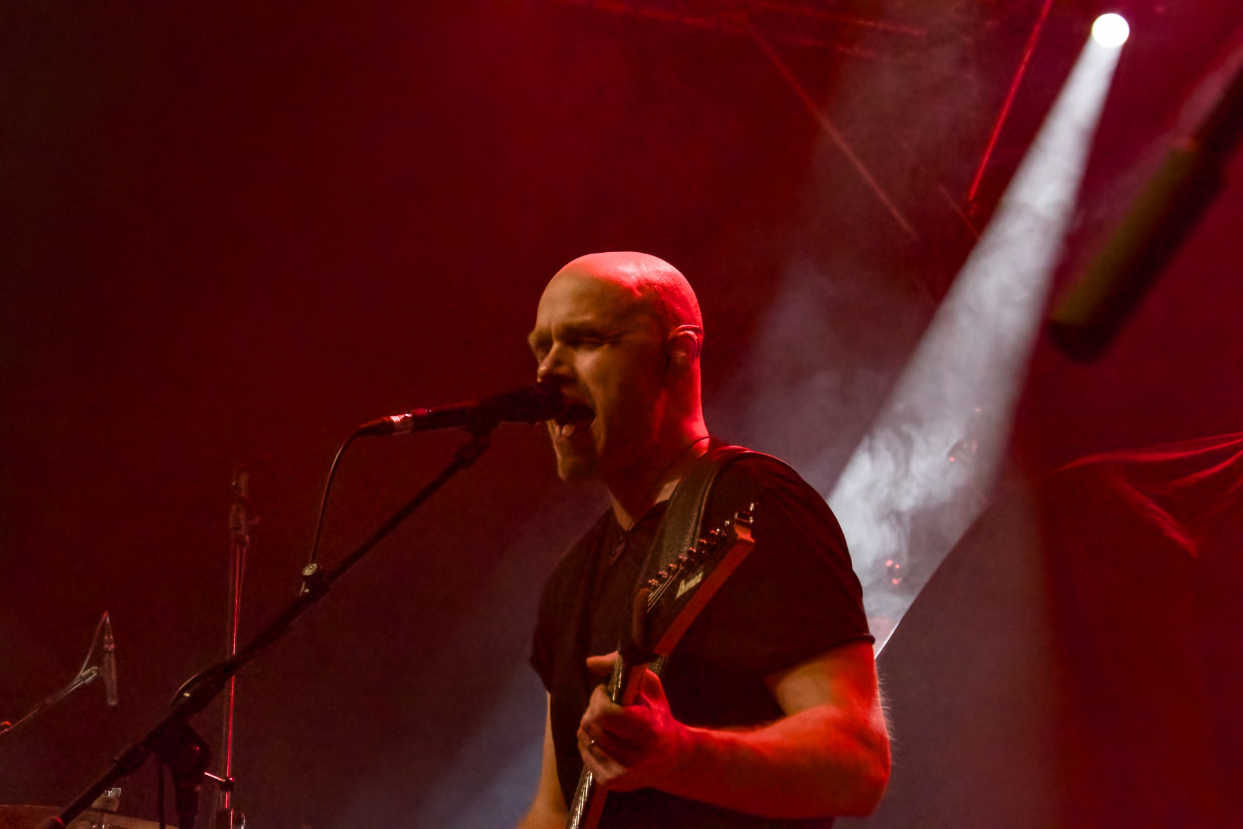 Der leicht provokante Stilbruch passt bestens zur Setlist: Denn das anschließende Stück „Ideate“ vom Album „Cognitive“, mit dem Soen 2012 ihre Studiokarriere starteten, schlägt bekanntlich ruhigere Töne an. Gänsehaut-Garantie gibt es auch bei „Illusion“, das wie das gleichermaßen gefühlvolle „Modesty“ vom Album „Imperial“ (2021) stammt und die enorme Wandlungsfähigkeit der talentierten Truppe aus ehemaligen Musikern von Opeth, Testament und Willowtree beweist.