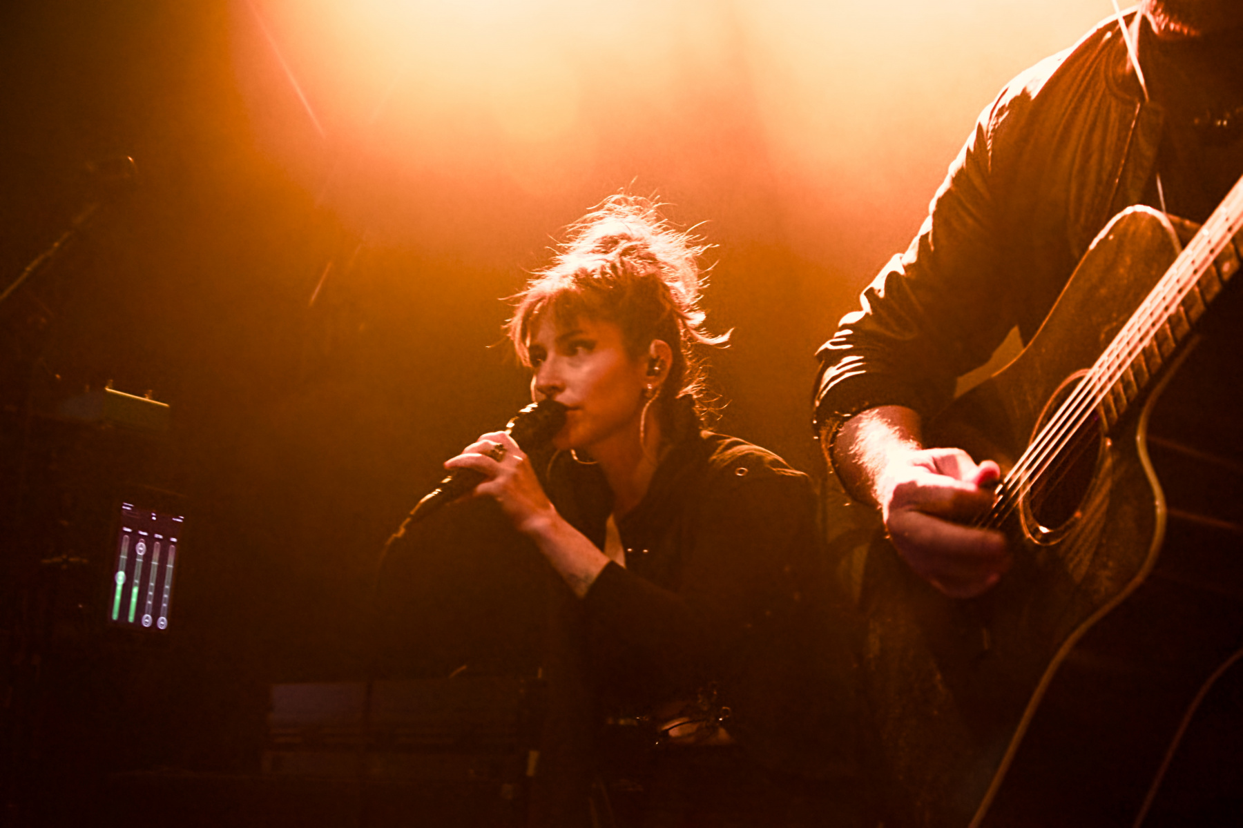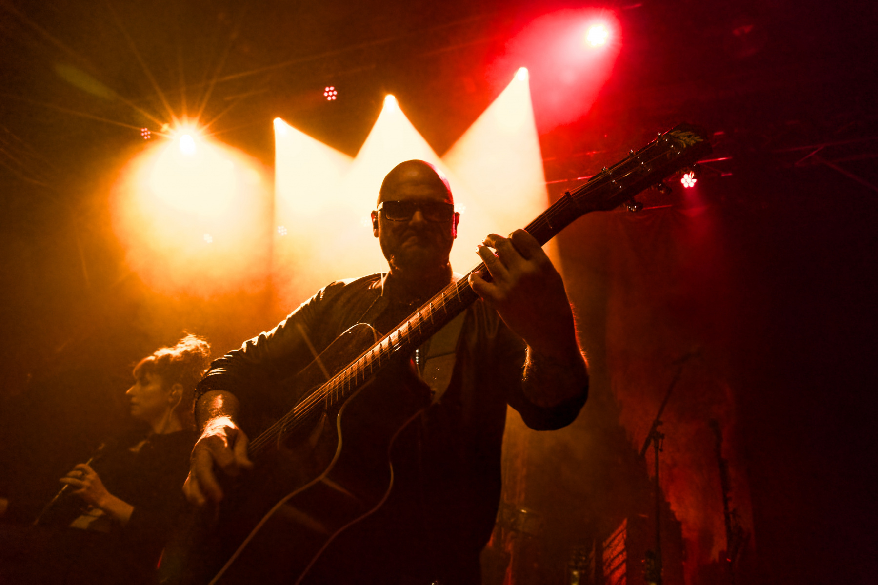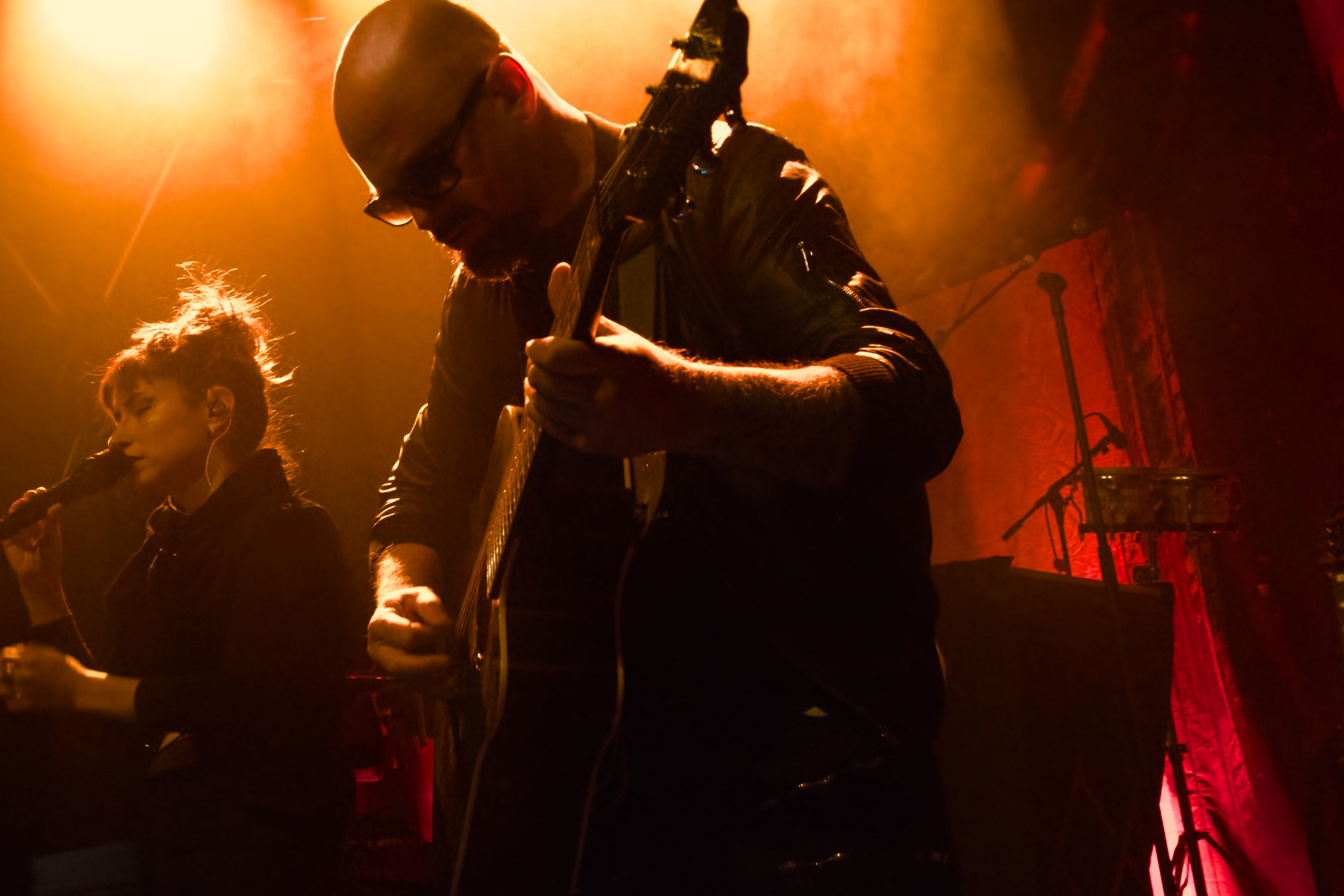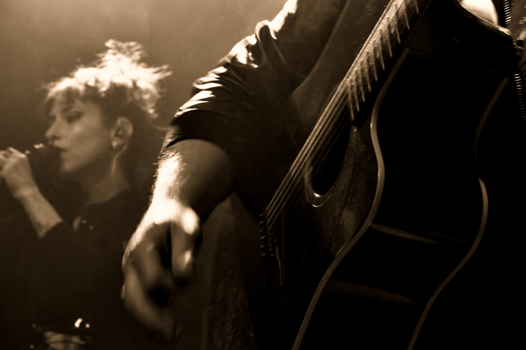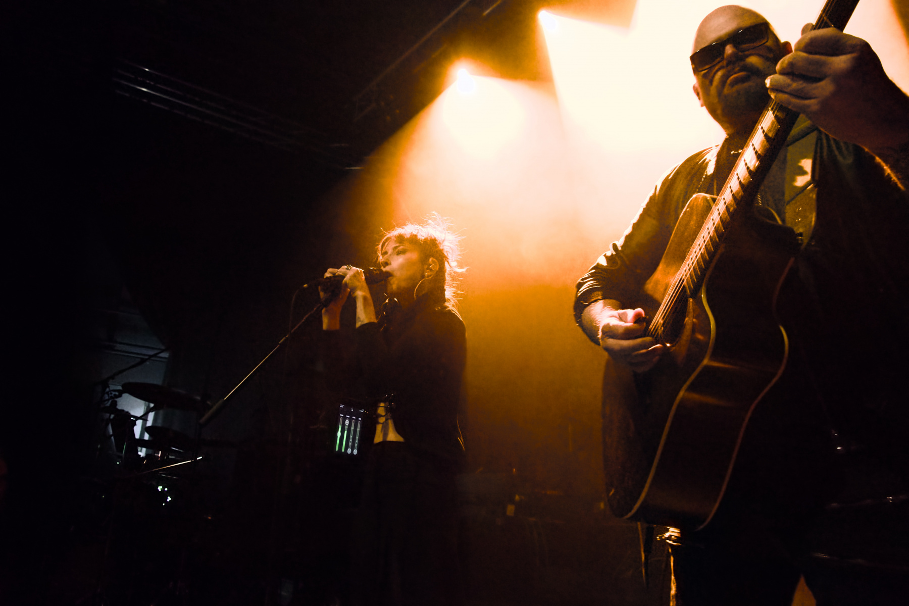 Womit wir beim leidigen Thema Location wären: Wie gesagt, war die Zeche Carl vor Jahren mein zweites Zuhause – von daher war mir bewusst, dass es dort keinen Bühnengraben gibt. Als Fotograf kämpft man sich also während der ersten drei Songs, bei denen das Knipsen erlaubt ist, durch die Front Row – in der Hoffnung auf halbwegs gute Shot-Perspektiven. Nun war aber das Licht bei Trope so (besch…) bescheiden, dass mir diesmal von der Gruppe auch eben nur bescheidene Aufnahmen gelungen sind. Aber egal: Ihr kurzer Unplugged-Gig, bestehend aus sechs Songs, war trotzdem wieder toll. Es gab neben fünf Stücken vom Debüt sogar ein komplett neues Werk zu hören: „Walk On Water“ wird auf der zweiten Platte sein, an der Diana und Dave derzeit zwischen den Touren mit Hochdruck arbeiten.