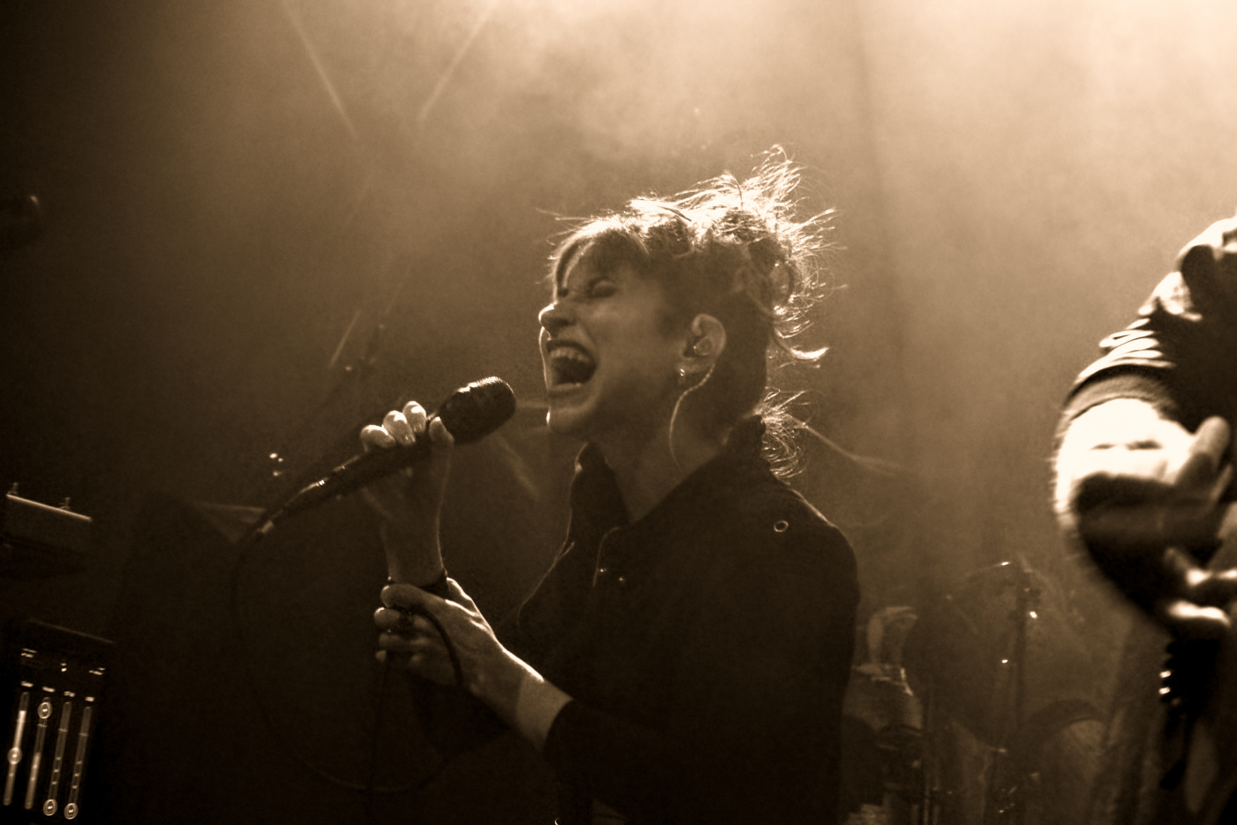 Auch bei ihrer Live-Premiere gehen die neuen Stücke gnadenlos gut ab, Bestes Beispiel: „Unbreakable“, bei dem im Refrain auf Aufforderung von Frontmann Joel Ekelöf sogar Gruppen-Klatschen und Mitsingen angesagt ist. Für manchen traditionellen Metal-Fan ist das ein Sakrileg, aber der Sänger spielt offenbar gerne mit den gängigen Szene-Klischees. Zunächst ist er, ganz Rockstar-like, in eine schwarze Lederjacke gekleidet, zur Mitte des Konzerts tauscht er diese aber gegen ein schickes graues Sakko mit Club-Abzeichen aus.